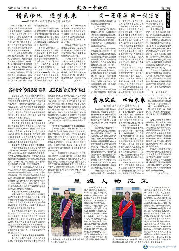 【“三抓三促”行動進(jìn)行時】定西一中校報2025年第七期 時間:2025-10-20 分類:三抓三促/ 校報???/a> (撰稿:董立順 審核:王景龍 田永強(qiáng) 監(jiān)審:水晶 ) 定西一中校報2025年第七期下載 分享: 上一個: 【“三抓三促”行動進(jìn)行時】筑基強(qiáng)師涵養(yǎng)匠心 示范引領(lǐng)共繪宏圖 相關(guān)文章 【“三抓三促”行動進(jìn)行時】筑基強(qiáng)師涵養(yǎng)匠心 示范引領(lǐng)共繪宏圖 【“三抓三促”行動進(jìn)行時】聚名師智慧 ?賦能備高考 【“三抓三促”行動進(jìn)行時】定西一中校報2025年第六期 【“三抓三促”行動進(jìn)行時】四省聯(lián)袂研考路 共繪備考新藍(lán)圖 【“三抓三促”行動進(jìn)行時】喜報——我校教師在2025年全市中小學(xué)基礎(chǔ)教育精品課遴選活動中榮獲佳績 【“三抓三促”行動進(jìn)行時】教學(xué)增效重常態(tài)?教研賦能鑄匠心 【“三抓三促”行動進(jìn)行時】喜報——我校學(xué)子在2024—2025學(xué)年全國版圖知識競賽(中小學(xué)組)活動中榮獲佳績 【“三抓三促”行動進(jìn)行時】喜報——我校學(xué)子在2025年全國中學(xué)生生物學(xué)競賽甘肅賽區(qū)聯(lián)賽中榮獲佳績